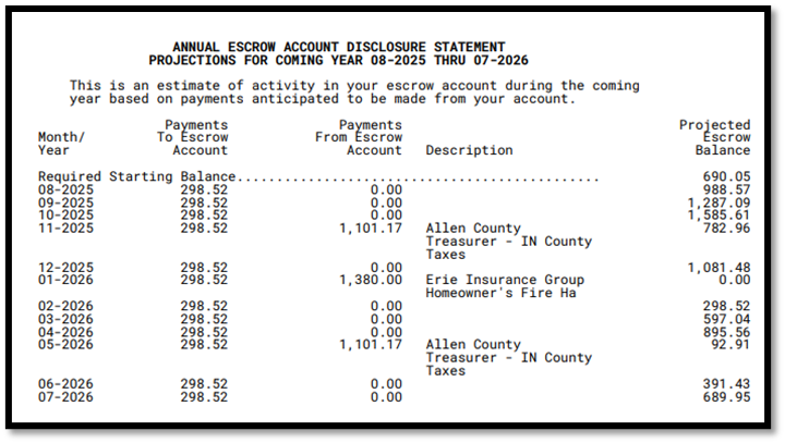 1. Annual Escrow Account Disclosure Statement – Projections for the Coming Year