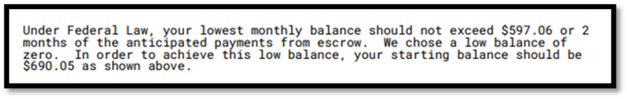 This shows the minimum starting balance needed in your escrow account to help ensure the account does not fall below zero.