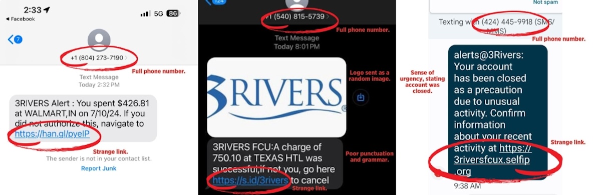 Here are the biggest red flags that a text message is NOT from 3Rivers:
