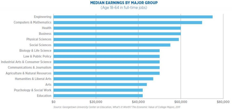 According to a Georgetown University Center survey, the major you choose effects how much money you are expected to earn.